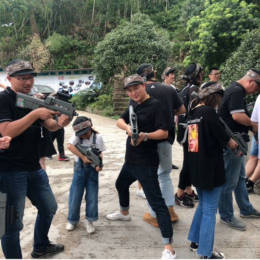 稍作休息后,大家期待的第二項活動-真人CS。在教官的一聲問好中拉開了序幕,風馳團隊高聲回答“好,很好,非常好”的口號響徹云霄,振興士氣。教官看了都夸贊我們是有組織,團隊凝聚力很強的團隊。教官先給大家分成了4小組,每組成員為17人,以車輪戰(zhàn)的方式來決定最后勝利的一組,獲勝小組將會獲得價值2800元的獎品。聽到獎品的價值各小組成員兩眼放光,蠢蠢欲動。大家熟悉裝備使用以及了解游戲規(guī)則后,游戲正式開始了。