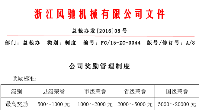 我司為了相應(yīng)政府號召,鼓勵符合要求的員工代表企業(yè)參加各項比賽和評選活動,特完善了獎勵政策,對于員工代表企業(yè)在各類比賽或評選中獲得名次及成功入選,為公司贏得榮譽,一經(jīng)核實公司將給予特別榮譽獎,并額外給予積分獎勵。