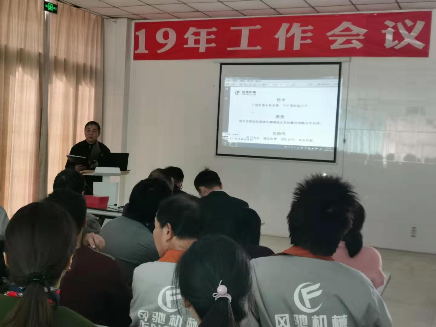 會議由風馳車輪公司副總經(jīng)理陳景賢主持,總經(jīng)理李正華總結(jié)了2018年的工作,部署2019的任務(wù)。李總在會上提到在美國發(fā)起貿(mào)易戰(zhàn),經(jīng)濟下行壓力增大的嚴峻形勢下,車輪公司經(jīng)過全體員工的共同努力,取得銷售增長二成的好業(yè)績,開發(fā)了鋁輪和工程圈兩項新產(chǎn)品,為今明兩年的發(fā)展打下扎實的基礎(chǔ)。2019年,我們更要凝心聚力,乘勝前進,出色完成“營業(yè)收入2500萬元,利潤指標9%,每萬元產(chǎn)值工資含量不超過14.5%,客戶投訴少于15起,有等級的工傷事故0起”的年度計劃目標,以此來感謝總公司的扶持和關(guān)懷。