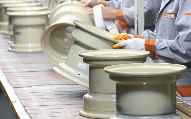 公司擁有高速自動(dòng)沖壓線、噴焊機(jī)、焊接機(jī)器人、德國(guó)進(jìn)口涂裝線、智能包胎線等高端生產(chǎn)設(shè)備,擁有20多條專業(yè)的車輪生產(chǎn)線,具備年產(chǎn)800萬只車輪的生產(chǎn)能力。